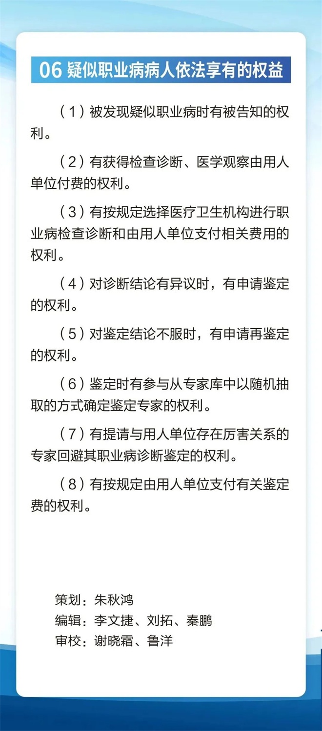 保護勞動者健康,一起了解疑似職業(yè)病的概念定義、法律依據(jù)、界定標準、處理原則、在界定疑似職業(yè)病過程中的注意事項,以及疑似職業(yè)病病人依法享有的權(quán)益。